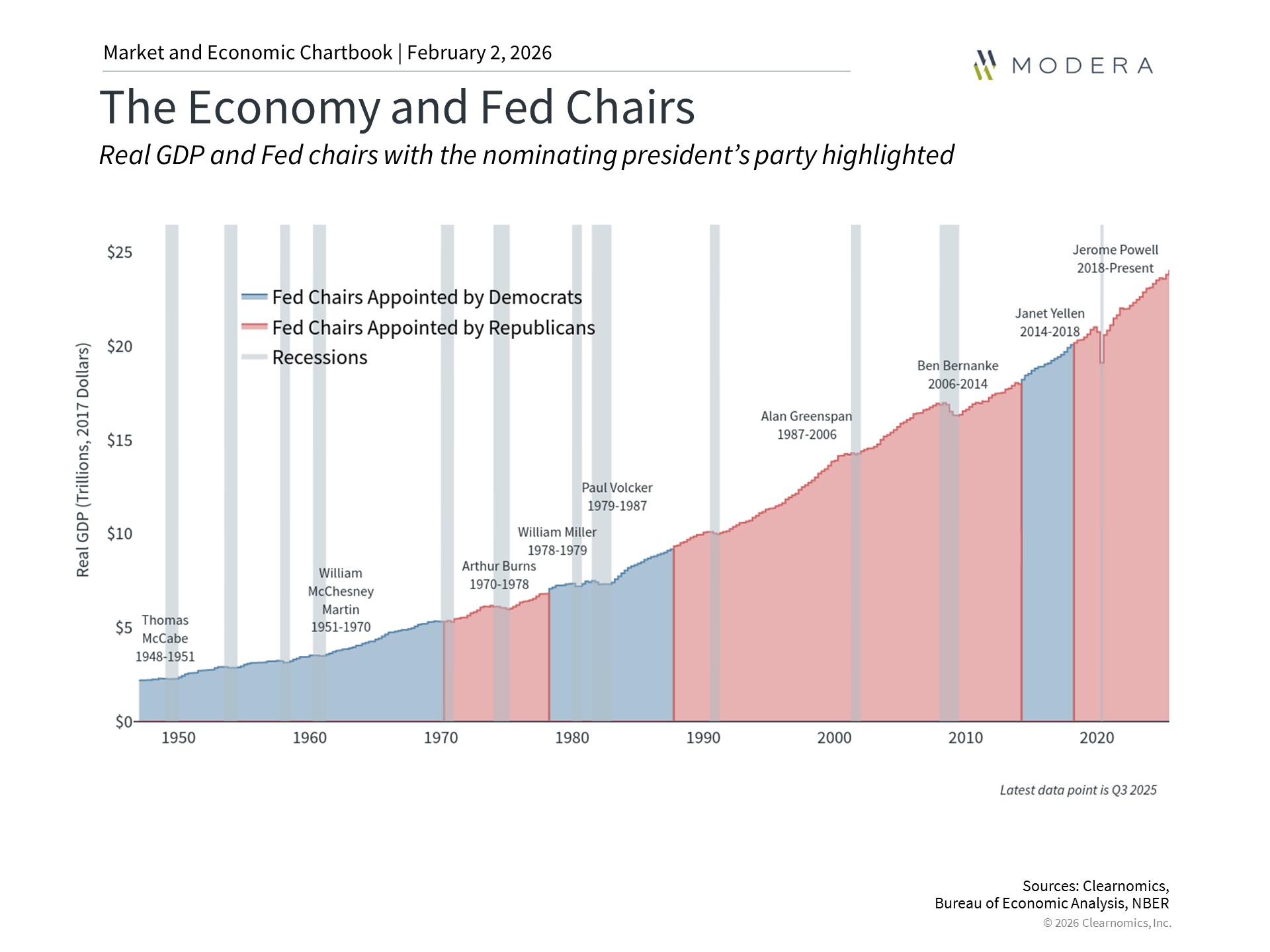 A change in Fed leadership often raises questions, but long-term economic and market trends tend to persist across administrations and Chairs. While Kevin Warsh may bring a different policy style, the Fed’s consensus-driven process and the underlying health of the economy remain the key forces shaping market outcomes.